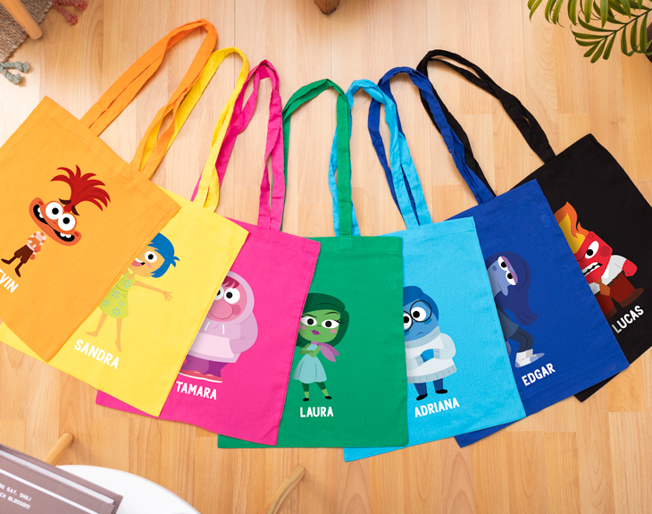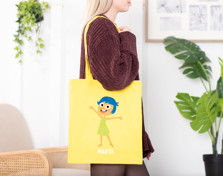 ¿Te suena la peli de 'Inside Out'? Si es una de tus pelis favoritas y estás esperando a que salga la segunda parte, tenemos algo que no te puede faltar. Se trata de nuestra bolsa tote personalizada con diseño "Emociones". ¡Podrás elegir al personaje de la peli que más te represente! ¿Quizás alegría, con su gran entusiasmo? ¿O puede que Ira con su furia? Sea cual sea la emoción que más te represente, la podrás llevar siempre contigo en esta bolsa de tela tan chula. Además, lo mejor que tiene es que es personalizable. Podrás escribir el nombre que más te guste! Personalizar esta bolsa tote es muy sencillo. El primer paso a seguir consiste en añadir el producto al carrito y entrar al área de personalización. Una vez ahí, ya puedes escribir el nombre que tú quieras y elegir la emoción que más te represente. Pronto estará perfecto y listo para regalar. ¡Será un original regalo para los fans de 'Inside Out'!