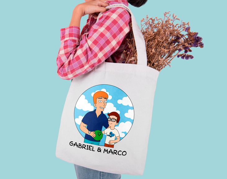 Los mejores recuerdos de nuestra infancia han sido con nuestros padres. Ir al parque con papá, que te enseñe a montar en bici, que te ayude con los deberes... Hay cosas que nunca se olvidan y mucho menos los momentos que hemos vivido con nuestro padre. Si a los dos os encanta ver juntos vuestras series animación favoritas, sorpréndele con un regalo único: ¡su propia bolsa tote personalizada! Un regalo de lo más práctico que podrá utilizar siempre que quiera para ir a cualquier sitio. ¡Es genial! Como sabemos que papá se merece lo mejor, esta original bolsa tote conseguirá robarle el corazoncito. Porque no es un simple bolsa de tela en la que guardar un montón de cosas, es una bolsa con un diseño único y hecho a medida para tu padre. Su diseño le dejará sin palabras cuando os vea convertidos en auténticos dibujos animados. Sí sí, en este diseño los protagonistas sois vosotros. ¿A que mola? Pero espera porque todavía tienes que personalizar tu bolsa de tela a medida. Añade el producto al carrito y entra en el área de personalización. Una vez ahí, podrás elegir los detalles de tu bolsa y también podrás crear tus propios personajes como si fueran dibujos animados. Añade todos los detalles para que sea iguales que papá y tú y listo. Nosotros nos encargamos del resto. ¡Todos los padres se merecen los mejor del mundo!