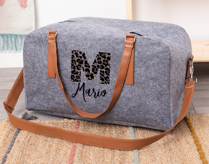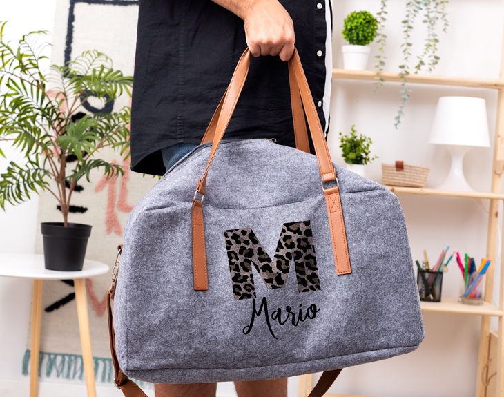 ¿Cuánto te queda para comenzar tus próximas vacaciones? Aquí te damos una oportunidad única de ver tus iniciales y nombre en esta bolsa de viaje personalizado. Y es que esta bolsa con letra presenta una peculiaridad única: cuenta con un diseño de lo más salvaje. Podrás encontrar tu nombre y inicial en el lateral de la bolsa. ¡Podrás guardar todo lo que necesites en este producto único! Estamos seguros de que no vas encontrar nada tan personal con un aspecto minimalista y artístico como esta bolsa de viaje con diseño de iniciales. El bolso está hecho de una combinación de materiales que no son contaminantes para el medio ambiente llamado fieltro RPET. Sus asas son especialmente resistentes, hechas de polipiel color marrón. ¡Esto le da un toque mágico y especial para esa persona que llevará la bolsa a cualquier rincón del mundo! ¿Necesitas un regalo original con un tono animalistas y único? Este bolso está al alcance de tu mano y te permitirá almacenar todo lo que necesitas en tus vacaciones. Añade este producto al carrito para entrar en el área de personalización, donde podrás diseñar tu personalización más original y ver tus iniciales junto con tu nombre. ¡Nuestro equipo de profesionales se encargará de plasmar tu diseño en la bolsa de viaje! Altura: 30 centímetros. Ancho: 35 centímetros. Largo: 50 centímetros. Material: fieltro RPET/Polipiel.