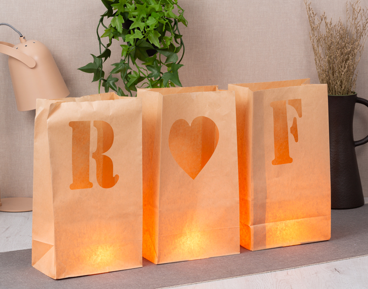 Tres bolsas de papel con velas muy originales en las que podrás personalizar un corazón y las iniciales de la pareja más feliz y bonita del mundo. Este regalo original es perfecto para enamorados. Personaliza las bolsas y preséntate con ellas a la mejor boda del año. La sorpresa incluye tres bolsas de papel con una vela cada una. Tenemos de la posibilidad de hacer packs de bolsas a medida para grandes eventos. Si estás interesado, ponte en contacto. Tamaño: - Bolsas papel kraft: 18x32 cm