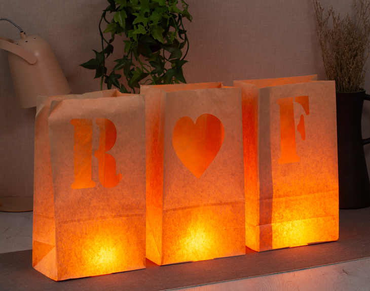 • 3 bolsas de papel • 3 velas LED • Tarjeta recordatoria.