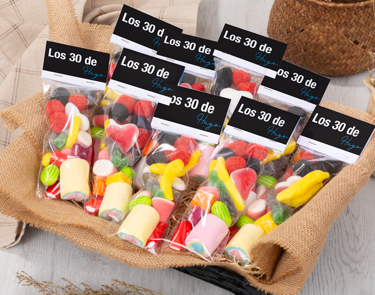 Si hay algo que no puede faltar en un cumpleaños son las chuches, por eso os traemos la manera más especial de presentarlas, se trata de una preciosa bolsita de chuches personalizada con el nombre y la edad de esa persona. Sin duda, la manera perfecta de dar la bienvenida a esta nueva etapa. Y es que, si este año has decidido celebrar tu cumple por todo lo alto y estás preparando una fiesta increíble para familiares y amigos, este detalle es la manera perfecta de darles una sorpresa. Además, podrás personalizarlo con tu nombre, la edad, el nombre de esa canción que tanto te define o el texto que quieras, ¡será totalmente a medida! Cuenta con un diseño sencillo, pero muy elegante, que encantará a todo el mundo, y lo mejor de todo, es que incluye una selección de las mejores chucherías del mundo, ¡tus invitados quedarán encantados! También es una gran idea si estáis preparando una fiesta de cumple para esa persona que vive el día de su aniversario con muchísima ilusión, ¡alucinará al ver este detallazo! Medidas: 22 x 7,5 centímetros. Peso: 125 gr.