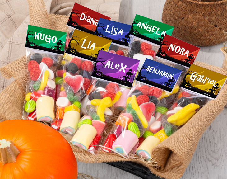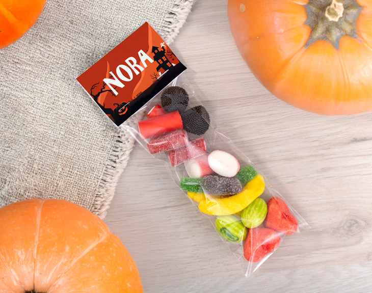 Sin duda, cuando pensamos en Halloween, lo primero que se nos viene a la cabeza son los dulces, las gominolas y todas esas cositas que empalagan, pero que nos encantan. Con esta bolsita de chuches personalizada, podrás disfrutar de esta época con un toque de dulzura, un poquito de terror y el truco está en que no podrás comerte solo una. Es perfecta para llevar al cole como regalo de Halloween, para sorprender a los invitados de tu fiesta temática o para repartir en el famosísimo truco o trato. Será el detalle ideal que todos adorarán, porque seamos sinceros a todos nos chifla el dulce. Y como en Halloween también hay espacio para la creatividad, puedes elegir entre diferentes diseños y personalizar tu bolsita de chuches con el nombre que quieras o con una frase corta que te haga sonreír. ¿Qué tal un “Susto o chuche”? Tú decides qué texto aparece. Personalizarla es muy fácil: solo tienes que añadirla al carrito, elegir el diseño que más te guste y escribir el nombre o frase que quieras. ¿Quieres poner un texto diferente en cada lado de la tarjetita? ¡También puedes! Haz clic en el lado que quieras modificar y, en la barra de opciones inferior, selecciona “Cambiar texto”. Al aceptar, elige si quieres aplicar el cambio solo a ese lado o a ambos. Y listo tendrás el detalle dulce más terroríficamente divertido del año. Medidas: 22 x 7,5 centímetros. Peso: 125 gr.