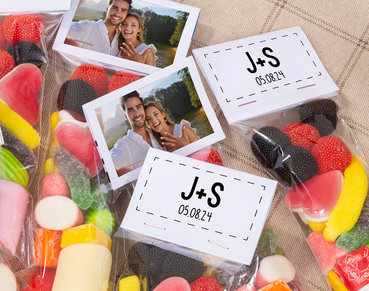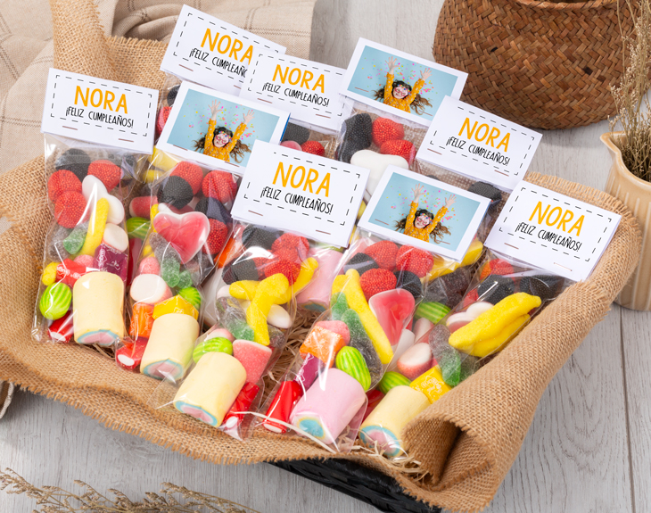 Si estás organizando una celebración o evento importante, hay algo que no te puede faltar para sorprender a todos tus invitados: ¡unas bolsita de chuches personalizada! Será un detalle único y súper dulce que les dejará sin palabras y que además les encantará porque seguro que no se lo esperan. Si no sabes qué puedes regalar a todos tus amigos y familia en este tipo de ocasiones, esta idea es lo más. Un cumpleaños, una boda, un baby shower, una comunión... No importa lo que celebres porque estas originales bolsitas te harán triunfar con tus invitados. Sin duda será el detalle más dulce que puedas hacerles y con el que disfrutarán como niños pequeños. Además, podrás personalizar la etiqueta de las bolsitas como tú quieras. ¡Nosotros nos encargamos del interior! Para poder personalizar estas bolsitas, lo único que tienes que hacer es añadir el producto al carrito, elegir las unidades que quieres y entrar en nuestro diseñador. Una vez ahí podrás añadir lo que quieras: una foto, texto o incluso stickers. Déjate llevar y haz la combinación que más te guste para sorprender a todo el mundo. ¡Es imposible no triunfar! Medidas: 22 x 7,5 centímetros. Peso: 125 gr.