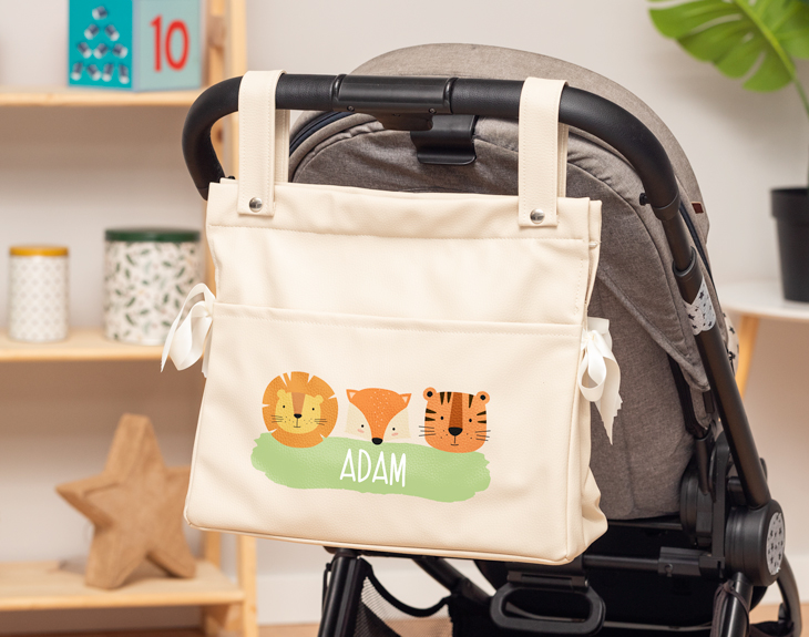 Un bebe siempre alegra la vida de cualquier familia, pero a veces cargar con todo lo que necesita puede ser cansado. Por eso este bolso de paseo personalizado es perfecto para esa madre, padre, tía o abuelo que siempre sale a pasar al pequeño. ¡Tiene todo el espacio para guardar todo lo que necesita el niño de vuestros ojos! Gracias a esta bolsa con diseño de animalitos, todos esos paseos con vuestro hijo/a serán mucho más ligeros. ¡Podrás colocar esta bolsa en el carrito y llevarla contigo a todas partes! Está hecho de cuero y cuenta con unas medidas de 32,5 centímetros de alto por 39 centímetros de largo. ¡Perfecto para guardar desde los pañales hasta el biberón! Además, podrás personalizar este regalo original para padres de la forma que quieras, desde eligiendo el color del bolso hasta el tipo de diseño que quieres. Añade el producto al carrito para escoger todo esto en el área de personalización. ¡Apunta el color que más te gusta entre los disponibles y personaliza ese diseño con el nombre del pequeño! Este bolso cuenta con un asa más extensa para poder llevarlo en el hombro o para colgarlo en cualquier lugar de la casa. Medidas aproximadas: 32,5 cm x 39 cm.