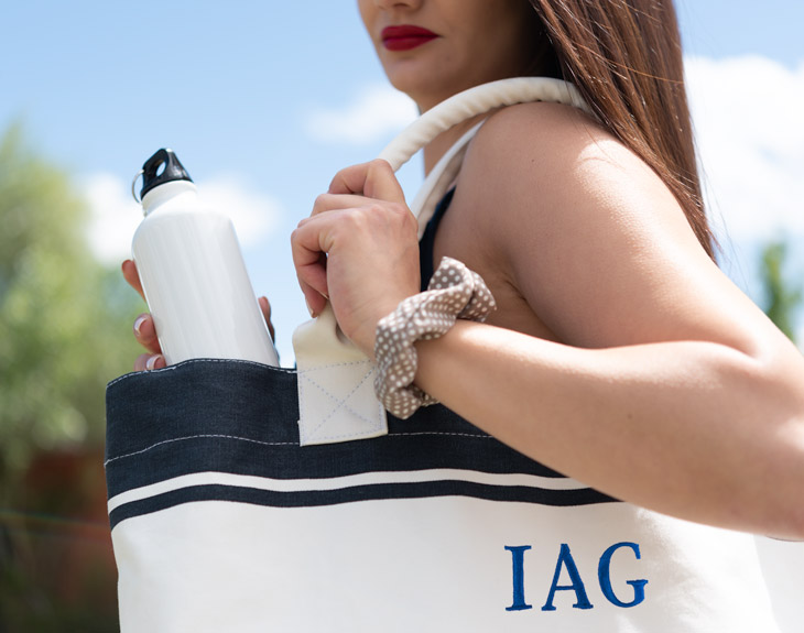 Ir a la playa significa llevar muchas cosas y más si pasamos todo el día fuera de casa y no queremos volver. Por eso, es importante tener un bolso bicolor personalizado tan guay como este en el que podamos guardar todo lo que necesitemos. Es perfecto para esas personas que pasan todo el día en la playa, desde por la mañana hasta por la tarde y además te llevas media casa a cuestas cada vez que va a la playa. ¡Será tu accesorio favorito para este verano! Sabemos que a la playa hay que llevar muchas cosas y por eso, necesitas este original bolso veraniego para todos tus días de playa. Estamos seguros de que te encantará a ti y a cualquier persona a la que se lo quieras regalar, porque es perfecto. Hecho de algodón, este bolso es ligero y resistente, perfecto para llevarlo a la playa, a la piscina o incluso de viaje porque cabe de todo. ¡Es un regalazo! Personalizar tu propio bolso es muy sencillo. - Si eliges personalizar solo el exterior: podrás elegir el color del hilo y escribir el texto que quieras. Nosotros nos encargamos de bordarlo. - Si eliges personalizar el exterior y el interior: en el caso del exterior, podrás elegir el color del bolso, escribir el texto que se borda fuera y elegir el color del hilo. En el caso del interior podrás elegir la opción que más te guste (iniciales, nombre o nombre con corazón). Medidas sin asas: 53 x 36 x 19 cm. Medias de las asas: 52 cm. Material: lona. Gramaje: 475 g/m².