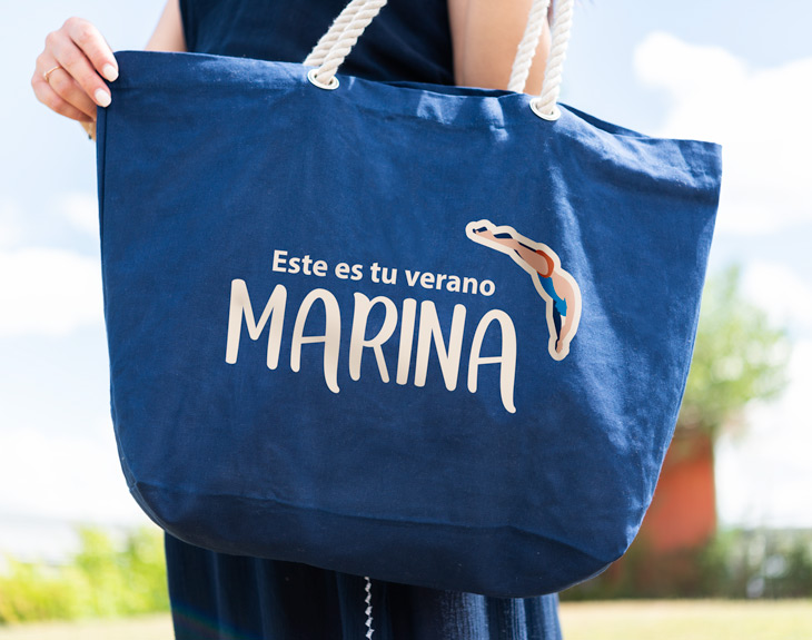 Todos los veranos pasa lo mismo. Llega la época de playa y piscina y entran las dudas de dónde llevar la toalla, la crema, las chanclas, y un largo etcétera de productos con los que vamos cargados para pasar un día estupendo con nuestros amigos y familia. No dejes que un día estupendo se estropee por la incomodidad de no llevar el bolso perfecto. Un bolso personalizado que hará de este verano el mejor de todos. Si conoces a una persona que va a hacer de este su verano, no dudes en regalarle un bolso de playa con diseño de nombre. Personalizado con su nombre y un diseño que le recordará siempre al mejor verano que ha vivido nunca. Cada día cuando se prepare para salir, verá este bolso con su nombre y un chute de energía le recorrerá todo el cuerpo, para animarse y dar el 100%. Un regalo original para vacaciones que ayudará a mantener todo en orden y que nada se nos olvide. En el interior del área de personalización podrás elegir el diseño que quieras entre los dos disponibles: el nadador o la sombrilla. ¡Escoge el que más te guste y escribe el nombre de esa persona especial en el cuadro de texto! Harás que este sea su mejor verano. Todo lo que necesita para esas tardes soleadas que nunca acaban caben aquí. ¡Disfrutará del verano de la manera más agradable! Medidas sin asas: 55 x 39 x 15 cm. Medias de las asas: 90 cm. Material: lona. Gramaje: 220 g/m².