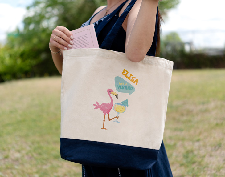 Con la llegada del verano, no puede existir mejor plan que reunir a todos tus amigos o familia para pasar un día en la playa. ¡No te puede faltar de nada! Ahora, gracias a nuestro bolso Sicilia personalizado con nombre podrás llevar todas tus cosas con toda la comodidad del mundo y sin dejarte nada, y todo ello, con un precioso estilo personal y único. Nuestro bolso playero está fabricado en resistente tela de lona en dos tonos: beige y azul oscuro. La combinación de estos colores y texturas consigue un acabado de lo más cuidado y elegante, ¡Todos se asombrarán con su estilo! Cuenta con dos asas para poder colgarlo cómodamente del hombro y una capacidad enorme de almacenaje. Pero lo que convierte este bolso en un regalo original y único es la posibilidad de personalizarlo con el nombre y apellido del destinatario. Al hacer el diseño, dispondrás de dos opciones de personalización en las que varía el color de la letra, puedes escoger el que más te guste para este detalle. Solo quedaría agregar el nombre y el apellido de la persona a la que deseas sorprender y nosotros nos encargaremos de imprimir el diseño en la parte externa. Además, al hacer el pedido, contarás también con la opción de personalizar el interior si lo deseas. Si escoges esta opción, dispondrás de dos botones de diseño, uno para escoger la parte exterior de la bolsa y otro para personalizar el interior con un nombre o iniciales, por ejemplo. Llevar las cosas para la playa o para cualquier otra excursión puede ser un engorro. Normalmente tenemos tantas cosas que no hay manera de guardarlas en una mochila, pero con este original bolso de veraneo ese problema desaparece. Sorprende a quien más quieres con este regalo tan especial y práctico y ¡seguro que este verano te lo agradece! - Si eliges personalizar solo el exterior: solo tendrás que completar el diseño que te dejamos y listo. - Si eliges personalizar el exterior y el interior: en el caso del exterior, solo tendrás que completar el diseño. En el interior, podrás elegir qué diseño te gusta más y completarlo también con el nombre o texto que quieras. Medidas: 46,5 x 40 x 15 cm. Medidas del bolsillo delantero: 22 x 18 cm. Medidas de las asas: 66 cm. Material: lona. Gramaje: 280 g/m².
