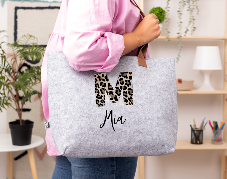 Cuando vamos a pasar el día fuera de casa, nos gusta ir bien preparados por si surgen imprevistos. Con este bolso Stone, olvídate de dejar cosas en casa por falta de espacio. ¡En este bolso cabe de todo! Puedes llevar desde la cartera y el móvil hasta los apuntes de la universidad. También se puede convertir en un regalo muy original, perfecto para esa persona que está todos los lados, menos en su casa. Además, ¡es personalizable! El diseño de este bolso, sin duda, cautivará los corazones más salvajes. Está formado por una gran inicial rellena con el famoso estampado en Animal Print, podrás elegir entre varios diseños distintos. Justo debajo de la inicial podrás personalizarlo con el nombre o con un breve mensaje. Está fabricado en fieltro RPET de color gris, la combinación de materiales plásticos reciclados, además de chulísimo es un producto sostenible y bueno para el medio ambiente. Las asas tienen un tono marrón y el material es polipiel. ¡No esperes más y hazte con este bolso! Personalizar este bolso es algo facilísimo. Añades el producto al carrito y entras al área de personalización. Eliges la inicial y el nombre que quieres que aparezca en el bolso y todo lo demás lo hacemos nosotros. ¡Pronto podrás disfrutar de este bolso Stone personalizado! Altura: 65 centímetros (con asas incluidas) y 30 centímetros (sin asas incluidas). Largo: 42 cm. Material: fieltro RPET/Polipiel. Resistencia de hasta 6 kilogramos.