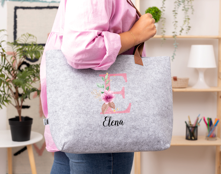¿Quieres viajar con la mayor comodidad posible y con un bolso que tenga muchísima personalidad? ¡En este nuevo bolso personalizado encontrarás tu inicial junto con tu nombre! Te vendrá estupendamente para no tener ninguna preocupación y desconectar en tus viajes. ¡Viajarás de la forma más cómoda! Nuestro diseño de letras botánicas lleva un estilo único y especial que cautivara a quien lleve puesto este bolso tan particular. El bolso está fabricado a partir de fieltro RPET, que es una combinación de materiales plásticos reciclados. Esto lo convierte en un producto que es completamente sostenible para el medio ambiente. Las asas son de polipiel y cuentan con un tono exquisito, mas marrón para los vanguardistas. ¡Es el mejor producto para esa persona que lo lleva todo! ¡No se nos puede ocurrir un regalo más original y con tanta personalidad! Este bolso es idóneo para evitar preocupaciones, ya que con la inicial evitarás tener que buscarlo. ¡Todo el mundo sabrá que es tuyo! Añade este producto al carrito para entrar en el área de personalización! Elije tu inicial entre las distintas tonalidades de color y pon tu nombre justo debajo de la letra. Nosotros nos ocuparemos de que tu diseño quede de maravilla para que todos vean ese estilo único y personal que siempre llevas contigo. Altura: 65 centímetros (con asas incluidas) y 30 centímetros (sin asas incluidas). Largo: 42 cm. Material: fieltro RPET/Polipiel. Resistencia de hasta 6 kilogramos.