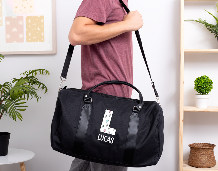 Viajar es una de las experiencias más interesantes y divertidas que hay. Descubrir lugares nuevos, conocer nuevas culturas y personas con diferentes costumbres a las nuestras es algo fascinante. Sin duda, esta bolsa de viaje tan chula es algo que no puede faltar en tus viajes. Si conoces a esa persona con alma viajera, que siempre está de un lado para otro organizando viajes, tenemos el mejor regalo que le puedes hacer. Se trata de nuestra bolsa travel “Alfabeto rayitos”, se convertirá en su compañera de viajes. Es perfecta para que pueda guardar todo el equipaje y lo transporte de un lado para otro de manera cómoda y práctica. Y lo mejor: es personalizable. ¡No habrá otra bolsa de viaje igual! Personalizar esta bolsa de viaje es súper sencillo. El primer paso a seguir consiste en añadir el producto al carrito y entrar al área de personalización. Una vez ahí, escoges la inicial de nuestro alfabeto rayitos que quieras y escribes un nombre. Pronto quedará perfecta y lista para regalar. ¡El regalo perfecto para viajeros. Altura: 33 centímetros. Ancho: 16,5 centímetros. Largo: 47 centímetros.