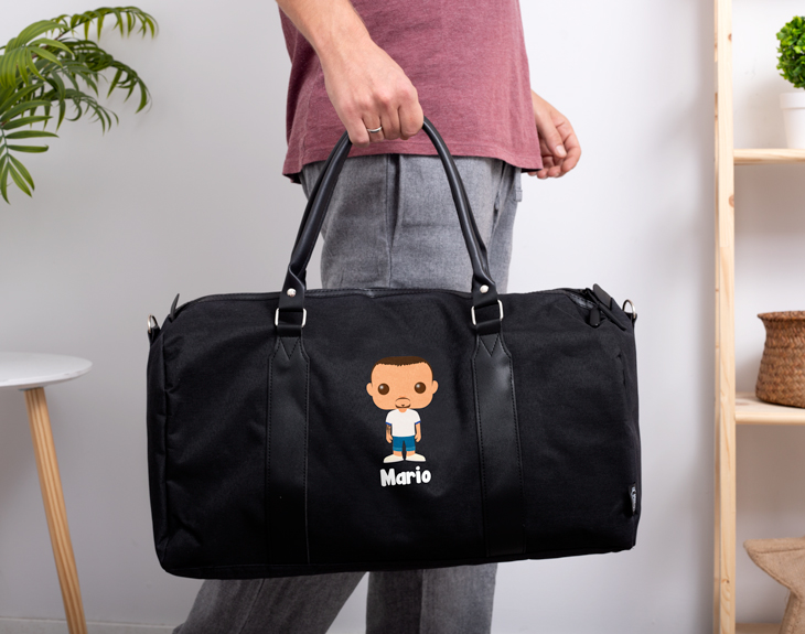 ¿Eres una de esas personas que adora viajar y descubrir nuevos lugares y culturas? Sin duda, tenemos algo que no te puede faltar. Se trata de nuestra bolsa travel “Familia Tinok”, es perfecta para guardar la ropa, el neceser, el calzado… Todo lo necesario para ir siempre bien preparado a los viajes. Y lo mejor de esta bolsa de color negra es que es personalizable. Esto quiere decir que tú eres quien diseña a este personaje Tinok como tú quieras. Hay un montón de accesorios y rasgos diferentes para elegir, seguro que consigues que se te parezca. ¡Tendrás tu propio personaje Tinok! También se puede convertir en un regalo muy original para esos fans de los personajes Tinoks Personalizar esta bolsa de viaje de color negro es súper sencillo. El primer paso a seguir consiste en añadir el producto al carrito y entrar al área de personalización. Una vez ahí, ya puedes crear desde cero a tu avatar Tinok, ¡ya verás qué divertido! Nosotros nos encargamos de todo lo demás. Pronto quedará perfecto y listo para regalar. ¡Un original regalo para viajeros! Altura: 33 centímetros. Ancho: 16,5 centímetros. Largo: 47 centímetros.