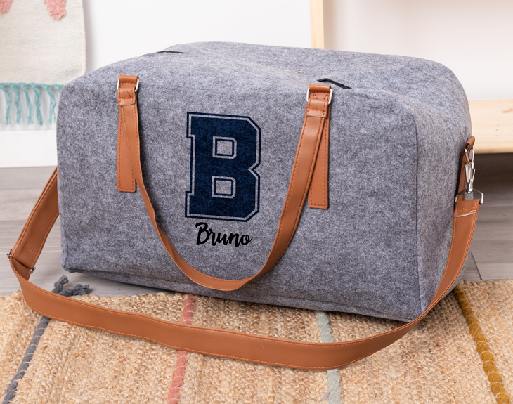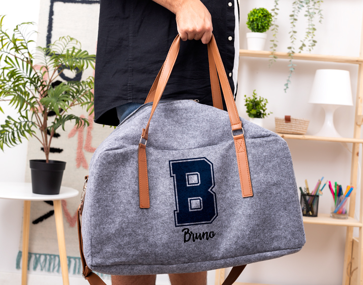 Todas las personas que han comenzado la universidad saben lo que se siente al comenzar una etapa como esta. ¿Por qué no empezar esta nueva aventura de la forma más elegante posible? Una bolsa personalizado como esta es perfecta para llevar toda esa ropa que tanto te gusta en cada uno de tus viajes. ¡Podrás llevar la bolsa en la mano o colgada en el hombro! Esta bolsa de viaje con diseño de alfabeto college cuenta con detalles y colores de lo más elegantes, gracias a sus asas de color marrón hechas de polipiel y una cinta ajustable para llevarla a modo de bandolera. Este producto está fabricado en resistente fieltro RPET, un material que resulta de la combinación de diferentes plásticos reciclados. ¿Esto qué significa? Que este producto es de origen reciclado, por lo que es sostenible y ayuda al medio ambiente. ¡Cuenta con un bolsillo exterior en el que podrás guardar desde la cartera hasta el pasaporte! Lo único que le falta a este regalo original para ser de lo más distinguido es, efectivamente, su personalización. ¡Podrás viajar a cualquier rincón del planeta con tu inicial en formato college! En el interior del área de personalización podrás elegir el color y la inicial que quieras entre las elecciones disponibles. ¡Solo tendrás que añadir el producto al carrito de compra y entrar en el diseñador! Nosotros nos ocuparemos de plasmar tu letra en el lateral de esta bolsa tan chic. Altura: 30 centímetros. Ancho: 35 centímetros. Largo: 50 centímetros. Material: fieltro RPET/Polipiel.