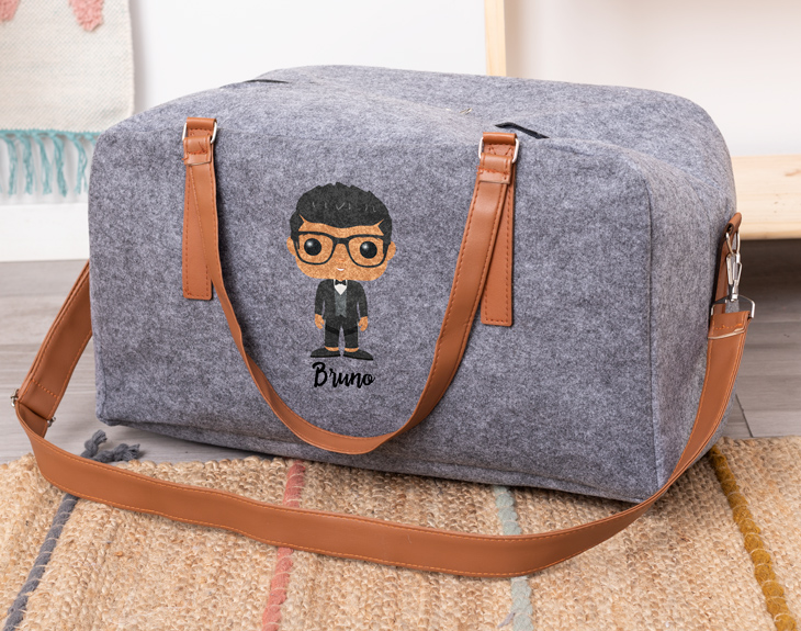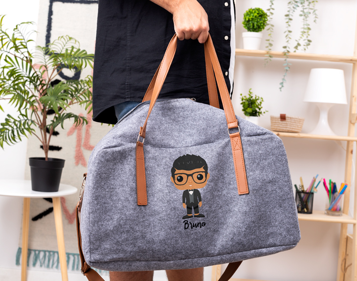 Viajar puede ser súper divertido siempre que tengas el espacio necesario para guardar toda tu ropa y esos productos de higiene que tienen que ir contigo. ¿Por qué no comenzar tu próxima aventura con la mejor bolsa personalizado posible? Si estás buscando un regalo con estilo para ese trotamundos que tienes en tu vida, esta bolsa es perfecta. ¿Quién no ha tenido problemas a la hora de hacer el equipaje de sus vacaciones? Con esta bolsa de viaje con diseño de Tinok seguro que no tendréis ninguna complicación. Su longitud de 50 centímetros, su ancho de 35 centímetros y su altura de 30 centímetros es perfecta para guardar todas esas cosas que son completamente necesarias en ese viaje que llevas tanto tiempo esperando. Esta bolsa está hecha de fieltro RPET, lo que es una combinación de diferentes plásticos reciclados. ¡Esto significa que es un producto sostenible y que ayuda al medio ambiente! Además, este regalo original cuenta con un bolsillo exterior donde guardar lo más fundamental, desde el pasaporte hasta la cartera. ¡Cuenta con dos asas para llevarla en la mano y una banda adicional para llevarla al estilo bandolera! ¿Sabes qué es lo mejor? ¡Este producto es perfecto para los fans de Tinok! Si siempre has querido saber cómo te verías en una de estas clásicas figuritas, esta es tu oportunidad. Añade el producto al carrito para poder entrar al diseñador de personajes, donde podrás crear tu propio Tinok con los accesorios que encuentres. ¡Será tu viva imagen! Así todo el mundo sabrá a quién pertenece la mejor bolsa de viaje del mundo. Altura: 30 centímetros. Ancho: 35 centímetros. Largo: 50 centímetros. Material: fieltro RPET/Polipiel.