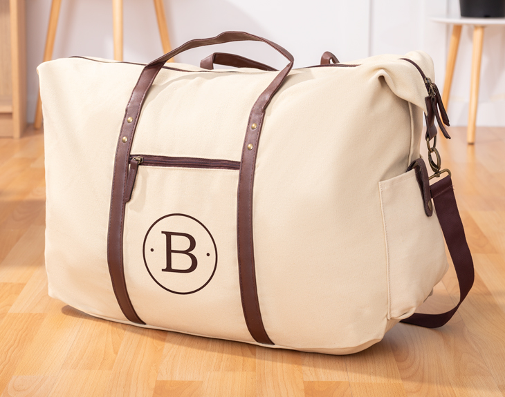 Llegan las vacaciones y con ellas viajes maravillosos en los que, como no, necesitamos un montón de espacio para poder meter todo lo que queremos llevarnos. ¿Y donde podemos transportar todas esas cosas que necesitamos para el viaje de forma cómoda, práctica y fácil a la hora de desplazarnos? En nuestra bolsa de viaje personalizada podrás transportar todo lo que necesites para tu viaje perfecto. Con unas medidas de 75 cm de largo, 48 cm de alto y 25 cm de ancho no habrá nada que se quede atrás en nuestras vacaciones. La bolsa de viaje gigante con diseño de inicial cuenta con un espacio principal con gran amplitud, además de un bolsillo en el exterior y otro más en el lateral, de esta forma podrás organizar tu equipaje para que todo vaya perfecto. Cuenta con dos asas en los lados frontales además de una cinta con mosquetón que es ajustable al hombro y está fabricado en canvas con un gramaje de 480g/m2. Altura: 48 centímetros. Ancho: 25 centímetros. Largo: 75 centímetros. Material: canvas/PU.
