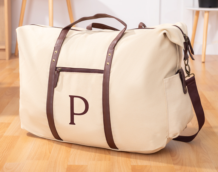 ¿Tienes un viaje a la vista y te has dado cuenta de que no cuentas con una maleta adecuada para él? ¡No pierdas los nervios! Gracias a nuestra bolsa de viaje personalizada Wilson Inicial estarás preparado para cualquier viaje de última hora en un pispás, ¡Y sin perder ese elegante estilo que te caracteriza! Este práctico bolso de viaje gigante cuenta con un bolsillo central de gran tamaño en el que podrás guardar casi todo lo que te puedas imaginar. Además, dispone de un bolsillo lateral y otro exterior para tener siempre a mano tu documentación y esas pequeñas cosas que necesitas tener más accesibles. El bolso está disponible en dos colores: azul oscuro y beige, ambos con detalles en marrón. Cuenta con un asa grande y regulable para colgar el equipaje al hombro y otras dos asas para poder llevarlo en la mano. Su elegante diseño es lo que te terminará de enamorar. Y es que, a su gran capacidad, le unimos también la posibilidad de personalizarlo con tu inicial , consiguiendo así un complemento irrepetible y único. Al hacer el pedido, solo tienes que indicarnos tu letra o la inicial de esa persona a la que deseas sorprender y nosotros nos encargaremos de imprimirlo directamente sobre la superficie de la bolsa. Prepara tu ropa, zapatillas, toallas y bolsa de aseo y guárdalo todo en este práctico regalo original ideal para pasar un verano inolvidable. ¡Serás la envidia de tu destino de vacaciones! Altura: 48 centímetros. Ancho: 25 centímetros. Largo: 75 centímetros. Material: canvas/PU.