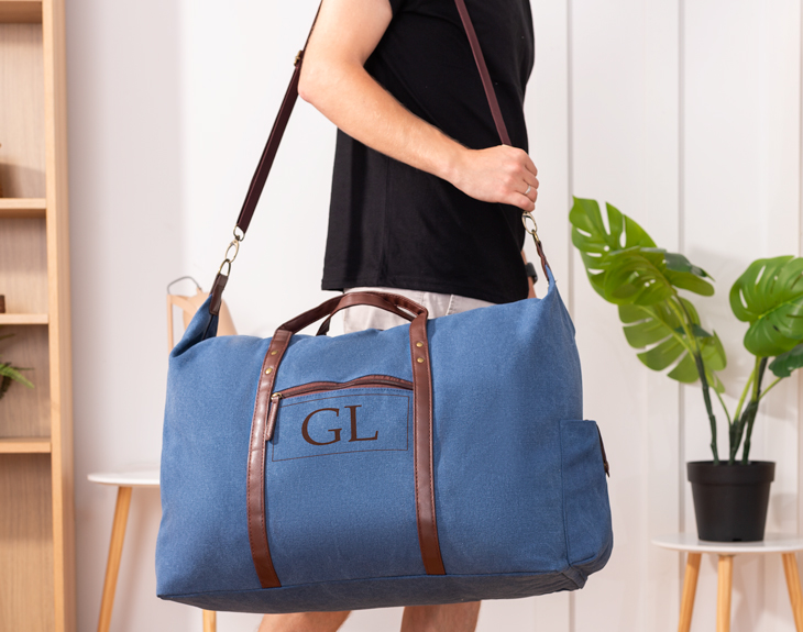 Llega la época perfecta para poder hacer esa escapada que llevas todo el año planeando. Tanto si te vas varios días como si solo sales un fin de semana, está claro que contar con un buen equipaje para poder guardar todas tus cosas, es un básico. Gracias a nuestra bolsa de viaje personalizada Wilson Iniciales podrás olvidarte de todos los problemas de espacio y ¡con un estilo único y de lo más elegante! Podrás llenar esta práctica bolsa hasta los topes sin preocuparte por la falta de espacio gracias a sus 75 cm de longitud. ¡Te cabrá de todo! Además, de su bolsillo grande, contarás también con un bolsillo lateral y otro exterior para las pequeñas cositas que necesites tener más a mano. Por otro lado, la bolsa tiene unas asas de mano y otra asa larga regulable con mosquetón para poder colgarla de tu hombro. Pero lo que marca la diferencia entre esta bolsa de viaje original y otras que puedes encontrar en el mercado, es su precioso y cuidado aspecto. Podrás escoger entre dos colores de bolsa (azul marino o beige) con sus detalles en marrón y, lo mejor, personalizarla con las iniciales que desees. Nosotros nos encargaremos de imprimir ese diseño sobre la superficie de la bolsa para convertirlo en un detalle único. No hay regalo para viajeros más práctico y original que el de esta bolsa. ¡Seguro que nunca querrán salir de viaje sin ella! Y lo mejor es que, al ir personalizada, no podrán confundirla con la de otra persona en la cinta de equipaje. Hazte con esta práctica bolsa de viaje y deja un recuerdo imborrable en su corazón. Altura: 48 centímetros. Ancho: 25 centímetros. Largo: 75 centímetros. Material: canvas/PU.
