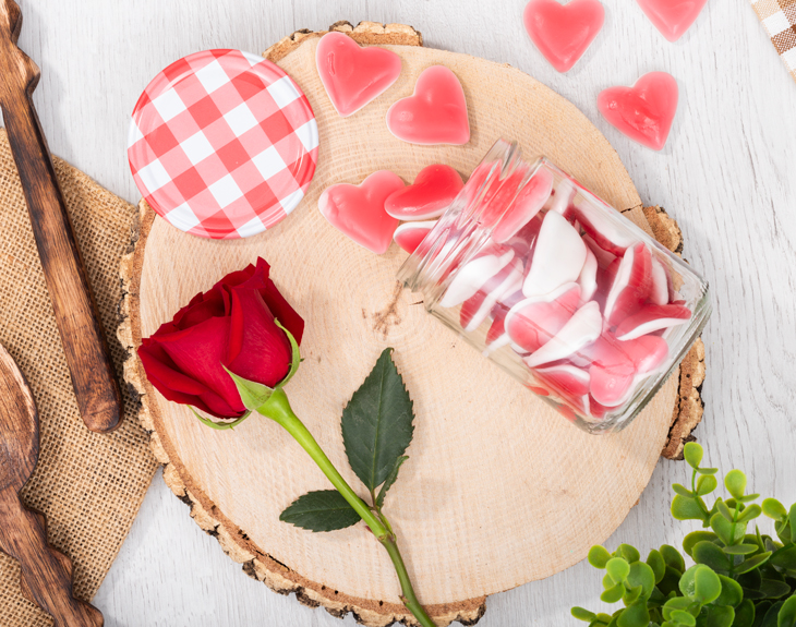 • Bote de chuches. • 1 Rosa. • Tarjeta Recordatoria.