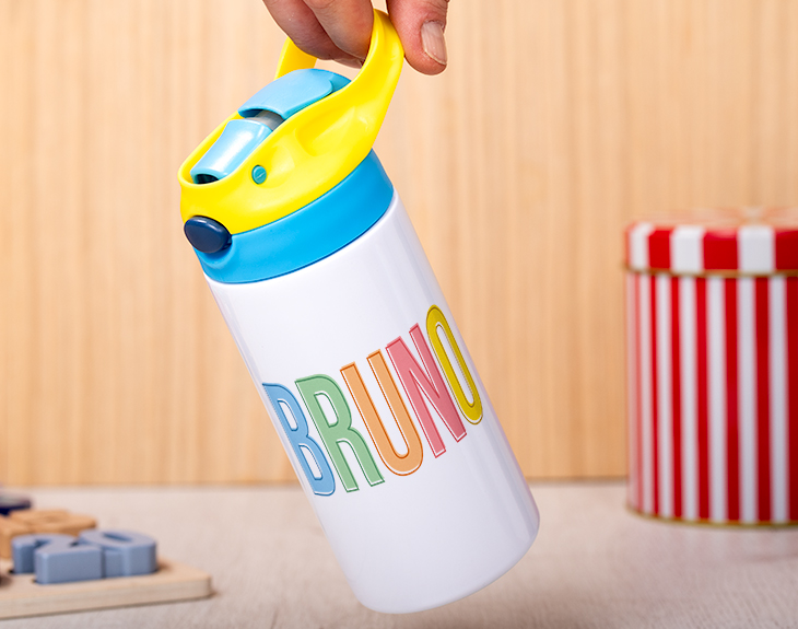 ¿Tu hijo acaba de comenzar el cole? Si estás pensando en tener un detalle con él para animarle con su nueva rutina escolar, tenemos el regalo perfecto. Se trata de nuestra botella tricolor “Alfabeto de colores”. Gracias a esta botela, ¡beberá sus dos litros de agua al día! Además, esta botella de agua tiene un tapón de lo más ergonómico con una pajita perfecta para que el peque pueda beber sin derramar ni una gota. ¡Es genial! Existe la posibilidad de elegir el color del tapón, entre: azul o rosa. Y lo mejor: es personalizable, podrás escribir el nombre del más peque de la casa. Perfecta para que se la lleve al cole o a las excursiones, ¡se convertirá en su mejor compañera de aventuras! Personalizar esta botella tricolor es súper sencillo. El primer paso a seguir consiste en añadir el producto al carrito y entrar al área de personalización. Una vez ahí, ya puedes escribir el nombre del más peque de la casa. Pronto quedará perfecta y lista para regalar. ¡Un original regalo para niños! Altura de la botella: 17 cm. Diámetro de la base de la botella: 7 cm. Capacidad: 360 ml. Material: Acero inoxidable.