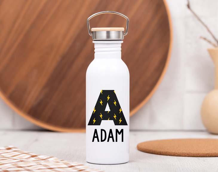 Todos necesitamos mantenernos hidratados en nuestro día a día y es mucho más fácil cuando contamos con una botella de agua cerca. Por eso, esta preciosa botella de agua "Alfabeto rayitos" es un regalo muy original. Es tan ideal que el destinatario no querrá despegarse de ella. Si se acerca su cumpleaños o buscas un detalle con el que cuidarle al inicio de curso o al empezar un nuevo trabajo, seguro que te estará eternamente agradecido con este regalo tan práctico como único. Esta botella personalizada es de acero inoxidable e incluye un tapón metálico con una anilla, así podrás llevarlo en la mano cómodamente. Olvídate de estar continuamente rellenando tu botella, ya que esta, tiene una capacidad de casi un litro. Mide 27 centímetros de alto a si que no te quitará mucho espacio en cualquier bolso o mochila. Este regalo original le acompañará a todos los sitios ¡Será su mejor aliado en la escuela y actividades diarias! Personalizar esta botella forest es súper sencillo. El primer paso a seguir consiste en añadir el producto al carrito y entrar al área de personalización. Una vez ahí, ya puedes escribir el nombre que tú quieras y escoger la inicial de nuestro alfabeto rayitos. Pronto estará perfecta y lista para regalar. ¡Será un original regalo! Altura de la botella: 22,5 cm. Diámetro de la base de la botella: 7,3 cm. Capacidad: 620 ml. Material: Acero inoxidable.
