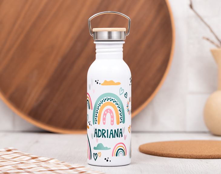 Seguro que más de una vez has oído lo recomendable que es beber agua nada más levantarse, pues nos encanta decirte que con nuestra botella forest personalizada lo será aún más. Y es que, tiene un diseño colorido de lo más alegre que conseguirá que empiece el día lleno de energía y buen rollo. Si estás buscando un regalo original para esa persona que no puede vivir sin sus dos litros de agua diaria, esta botella tiene su nombre, ¡y además literalmente! Solamente tienes que decirnos su nombre o el texto que quieras incluir y personalizaremos el diseño totalmente a medida. ¡Así no habrá dudas de cuál es su botella! Cuenta con un diseño retro y minimalista de lo más especial, pero no solo eso, también es muy práctico. Su tapón es anti derrames y tiene un asa para poder transportarla fácilmente.Un detalle perfecto para todas las edades, y es que, enamorará tanto a mayores como a los más pequeños. Si estás en busca y captura de una una botella para la vuelta al cole, esta opción es genial. Altura de la botella: 22,5 cm. Diámetro de la base de la botella: 7,3 cm. Capacidad: 750 ml. Material: Acero inoxidable.