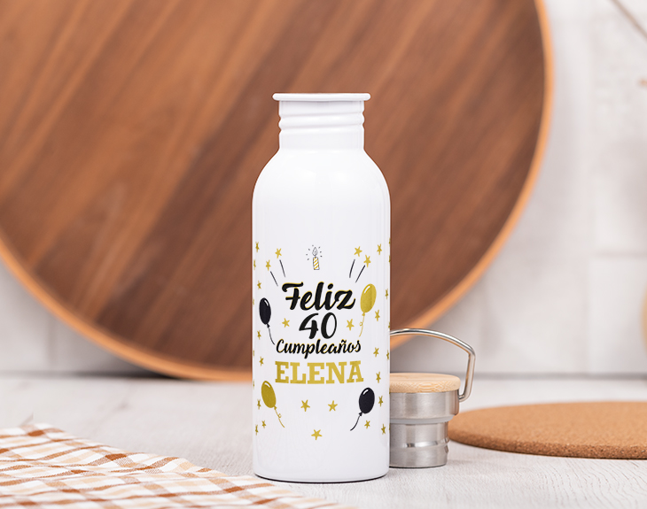 ¿No tienes claro que regalarle a esa persona tan especial el día de su cumpleaños? Sorprende con este regalo tan original. Con esta botella Forest personalizada harás que tu regalo no pase desapercibido. El fondo blanco encaja fenomenal con las letras y globos de colores negro y amarillo. Estos colores hacen este diseño muy chic. Este regalo original será el que marcará la diferencia. Puedes personalizar esta botella con el nombre del cumpleañero. Además tiene una capacidad de 620 mililitros, lo que hace de este un regalo practico para no tener que estar yendo a rellenar la botella cada dos por tres. Mide 22,5 centímetros de alto por lo que cabe en cualquier bolso o mochila. Cuenta con una anilla metálica en el tapón, lo que la hace más manejable. Ten seguro que la botella forest personalizada, con su distinguido diseño le encantará. Altura de la botella: 22,5 cm. Diámetro de la base de la botella: 7,3 cm. Capacidad: 620 ml. Material: Acero inoxidable.