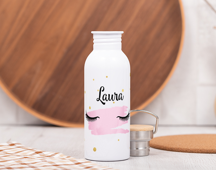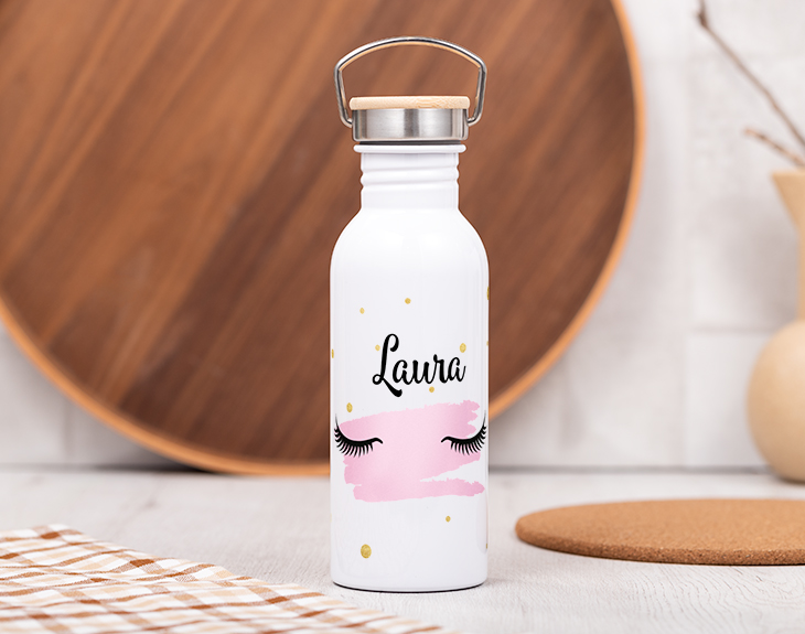 ¿No sabes que regalarle a tu amiga yogui? Estás de suerte, porque esta botella Forest personalizada es lo que tanto estabas deseando encontrar. Con su bonito y original diseño "Lashes" asegúrate de que vaya siempre fabulosa, cuidando todos los detalles. Este regalo original marcará la diferencia. Podrás personalizar esta botella con el nombre que quieras para que tu amiga no la pierda. Es ligera y fácil de transportar dado a su altura de 22,5 centímetros, podrás transportarla cómodamente en la bolsa de deporte o en la mano cogida del asa que tiene en el tapón. Cuenta con una capacidad de casi un litro, así no tendrá que estar rellenándola a cada rato. Regálale a la diva de tu amiga una botella tan divina como ella. Porque al fin y al cabo los accesorios son lo más importante. ¡Tu regalo marcará la diferencia! Altura de la botella: 22,5 cm. Diámetro de la base de la botella: 7,3 cm. Capacidad: 620 ml. Material: Acero inoxidable.