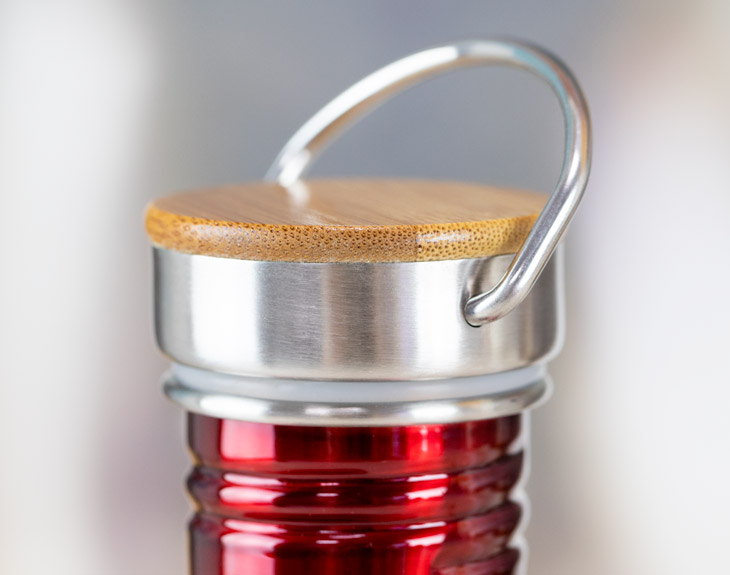 La botella "Forest" de color rojo es el regalo perfecto para los que quieren hidratarse de una manera eco friendly. Su tapón de madera, su asa y su acabado en acero inoxidable hacen de ella una botella perfecta para beber agua sin gastar plástico innecesariamente. Se personaliza grabando en ella el texto que tú nos digas, creando así una botella única e irrepetible. Seguro que ya sabes a quién sorprender con un regalo así. Altura de la botella: 24,2 cm. Capacidad: 800 ml. Material: Acero inoxidable.