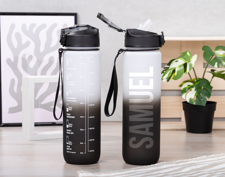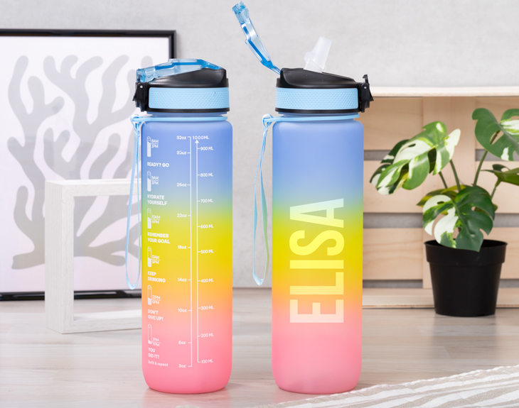 La mejor época del año ya está aquí, ¡el verano! Ya llega el calor, las vacaciones y los planes al aire libre. Y es que ahora con la subida de las temperaturas es súper importante mantenernos súper hidratados. Por eso, nuestra botella motivacional personalizada es algo que no te puede faltar este verano. Cuenta con una correa para que se pueda agarrar de manera cómoda y práctica y así llevarla de un lado para otro. Ademas, lo mejor que tiene es que es personalizable, podrás escribir el nombre que tú quieras. Es ideal para mantenernos bien hidratados durante los días más calurosos. ¡Es genial! Personalizar esta botella motivacional es súper sencillo. El primer paso a seguir consiste en añadir el producto al carrito y entrar al área de personalización. Una vez ahí, ya puedes escribir el nombre del cumpleañero. Pronto estará perfecta y lista para regalar. ¡Será un original regalo para verano! - Diámetro: 7,3 Cm - Material: Petg - Medidas: 7,3 X 28 Cm - Capacidad: 1 litro