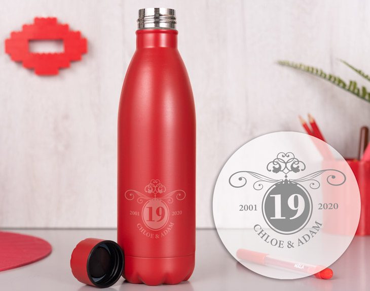¿Recuerdas como si fuera ayer la primera vez que os visteis? ¿Los nervios de esa primera cita, el primer beso y el comienzo de lo que está sindo la aventura más bonita de tu vida? Si se acerca vuestro aniversario y quieres darle una sorpresa a la altura, esta botella personalizada es perfecta. Y es que, gracias a tu persona favorita has encontrado el amor verdadero, has aprendido lo que es la complicidad, la conexión y las ganas de descubrir el mundo en compañía. Llegó como un terremoto para romper todos tus esquemas y para demostrarte que la felicidad absoluta existe. Por eso, se merece un regalo original como este. Un año más y miles de recuerdos juntos, ¿no crees que es la excusa perfecta para tener un bonito detalle?. Solo necesitamos que nos digas vuestros nombres y el tiempo que lleváis juntos. Porque si han sido los mejores años de tu vida, es el momento de agradecérselo. ¡Se quedará sin palabras al verlo! Altura de la botella: 25 cm. Capacidad: 790 ml. Material: Acero inoxidable.