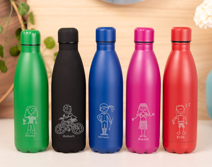 Es esencial hidratarse. Además, no sólo de agua vive el hombre. Y, si tienes una botella por casa, puedes llenarla del líquido que más te guste. Imagina que, además, la botella que va a salvarte la vida en los tórridos días de verano en la jungla de asfalto, es una simpática representación de los miembros de tu familia. O de ti mismo. O de la persona a la que se lo vas a regalar. Sabemos que a veces puede ser complicado acordarse de beber agua a menudo. Y es que estamos tan ocupados en nuestra vida diaria que es normal no acordarte de todas las cosas... ¡Incluso de las más importantes! No se nos ocurre una mejor forma de hidratarse y tomar cosas rica, y a la vez acordarte de la familia o de una personita especial, que con esta botella personalizada de doble pared. Esta botella blanca con personaje Hobbies está hecha de acero inoxidable, y cuenta con una doble pared que resulta perfecta para mantener la temperatura del líquido que se encuentre en su interior. ¡Podrás escoger los personajes que más te gusten! Solo tendrás que entrar en el área de personalización y elegir al personaje que más se parezca a ti o a esa persona especial. De esta manera podrás tener un regalo original tan peculiar como único... y muy útil. Altura de la botella: 25,5 cm. Diámetro de la base de la botella: 6 cm. Capacidad: 500 ml. Material: Acero inoxidable de doble pared.