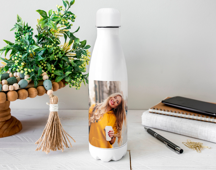 Es importante mantenernos hidratados en cualquier fecha del año: el agua es vital para nuestra existencia. ¿Sabías que el 60% de nuestro cuerpo es agua? Por ello es muy importante tener siempre una botella a mano en el bolso o la mochila, y si es una botella personalizada aún mejor. Es muy importante para el medio ambiente utilizar botellas que no sean de plástico, por eso tener una botella de acero inoxidable que se pueda lavar y re utilizar cuantas veces quieras es una alternativa perfecta, y más si viene con una fotografía de tu elección super chula, ¡te animará a beber el agua que debes al día! Podrás escoger entre varios diseños para esta botella totalmente personalizables o subir una foto, es elección tuya. Es un regalo original perfecto para darle a esa persona querida o para tener tu propia botella. Es ideal para llevarla a la oficina, al instituto o a cualquier lugar que se te ocurra. ¡Todo el mundo sabrá cuál es tu botella! Altura de la botella: 25,5 cm. Diámetro de la base de la botella: 6 cm. Capacidad: 500 ml. Material: Acero inoxidable.