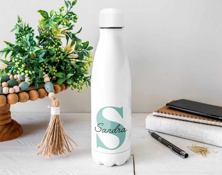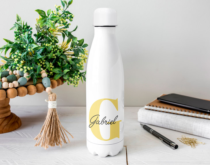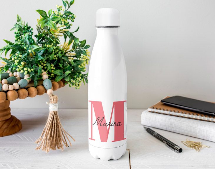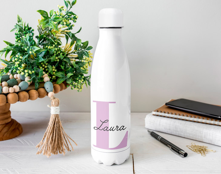 Mantenernos hidratados es algo que no podemos olvidar a ninguna hora del día y es que los expertos recomiendan beber al menos dos litros de agua al día. La hidratación siempre es importante pero lo es mucho más cuando llegan los meses de verano y el calor no da tregua. Por eso, seguro que conoces a alguien que no pueda salir de casa sin agua, vaya donde vaya. Así que es el momento de sorprender a esa persona con esta botella Nature personalizada que podrá llevar donde quiera y que sabemos que le encantará, tanto la botella como su diseño. ¡Es un regalazo! En casa, en el trabajo, en el gimnasio... Tenemos que hidratarnos siempre y por eso esta original botella reutilizable es perfecta para ello. Si eres de esas personas que a veces se olvida de beber, con esta preciosa botella lo harás constantemente porque querrás lucirla delante de todo el mundo. Lo mejor es que es reutilizable, hecha de acero inoxidable, por lo que tus bebidas se mantendrán tanto frías como calientes y también incluye un tapón para transportarla cómodamente. ¡Lo tiene todo! Pero espera porque aún queda lo mejor y es personalizar esta botella con este adorable diseño. Añade el producto al carrito y entra en el área de personalización. Este diseño está formado por la inicial y el nombre. Elige de qué color quieres la inicial y después escribe el nombre. Colócalo todo para que quede a tu gusto y listo. ¡Esta botella ya estará lista para utilizar! Altura de la botella: 25,5 cm Diámetro de la base: 6 cm Capacidad: 500 ml Material: Acero inoxidable