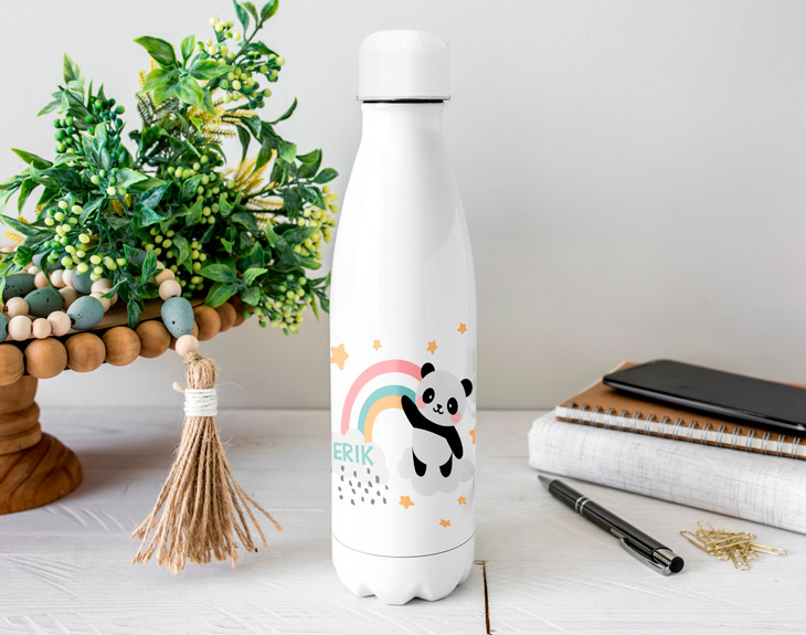Un nuevo curso es sinónimo de un nuevo comienzo. La vuelta al cole puede llegar a ser de lo más especial para los más pequeños de la casa. Al fin y al cabo, es el reencuentro con todos sus amigos después de unos meses de descanso y mucha paz. ¡El peque de la casa tiene que estar preparado para darlo todo en las clases! Su mochila, su almuerzo... ¿Y por qué no esta botella nature personalizada tan cuqui y mágica? ¡El panda será su mejor compañero! Los más pequeños también tienen que ir a clase con una sonrisa, y creemos que esta botella con nombre y diseño de panda es ideal para cumplir esa función. Está hecha de acero inoxidable y cuenta con doble pared. ¡Es perfecta para mantener la temperatura de tu bebida! Cuenta con una capacidad de 620 milímetros, lo que significa que podrá disfrutar de esa bebida que tanto le gusta durante muchísimo tiempo. El panda mágico será su mayor aliado para hacerle frente al nuevo curso gracias a este regalo original. Para personalizar este diseño, tendrás que añadir el producto al carrito y entrar en el área de personalización. Escribe su nombre en el diseño y crea un regalo único, que le sea de gran utilidad en su día a día en el cole. Altura de la botella: 25,5 cm. Diámetro de la base de la botella: 6 cm. Capacidad: 500 ml. Material: Acero inoxidable de doble pared.