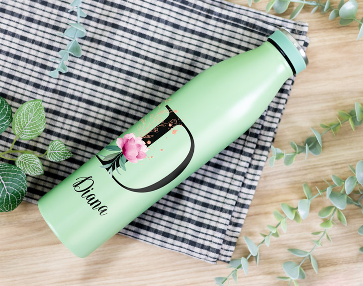 La elegancia es algo que tiene que estar en todos los aspectos de nuestro día a día. En la ropa que vestimos, en nuestra actitud, en los objetos que llevamos en el día a día... ¡Incluso cuando necesitamos tomar un poquito de agua! Para que nunca te deshidrates contamos con esta botella XL personalizada, que será el mejor complemento para tu día a día. Tomar nuestros dos litros de agua de una forma elegante y guay nunca está de más. Esta botella de acero inoxidable con colores pastel nos ayudará en esta ardua tarea, gracias a sus 750 mililitros de capacidad y a su altura de 28 centímetros. ¡Tiene el tamaño perfecto para llevarla a cualquier lugar! Además, podrás escoger el color que mejor te venga para tu diseño entre los dos disponibles: verde o azul. ¿Qué te parecería que este regalo original llevase la inicial que quieras plasmada? ¡Podrás elegir la letra que quieras para decorar esta botella XL! Añade el producto al carrito y entra en el diseñador para escoger la inicial que quieres. Esta aparecerá en la botella sin problema y será un bonito regalo con el que acertar en cualquier evento. La botella cuenta con doble pared y aislamiento de cobre al vacío. Esto quiere decir que tus bebidas podrán mantenerse frías o calientes durante más tiempo, conservando su temperatura original. Altura de la botella: 28 cm. Diámetro de la base: 6,5 cm. Capacidad: 750 ml. Colores disponibles: verde o azul. Material: Acero inoxidable.