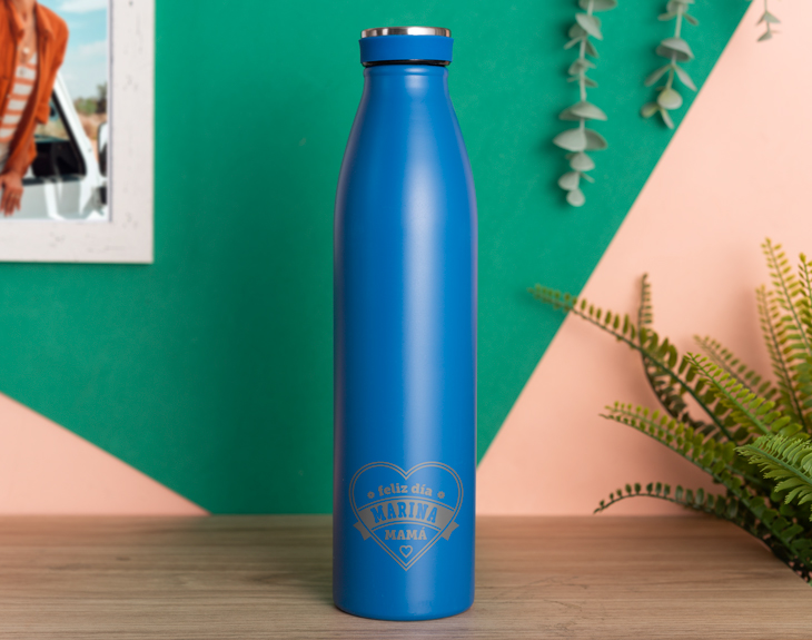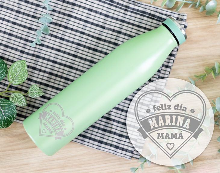 El Día de la Madre es uno de los días más importantes para cualquier familia. Es el día en el que debes celebrar que tienes a la mejor madre del mundo, a esa mujer que siempre está ahí cuando más la necesitas. Una madre como la tuya no se encuentra en cualquier sitio, y debemos felicitarla y alabarla todos los días de su vida. ¡Es un amor! Mamá es una gran mujer que siempre te ha cuidado lo mejor que ha podido. ¿Quién ha sido la persona que te ha preparado tus platos favoritos? ¿Y la que se sentaba a tu lado en la cama cada vez que te ponías malo? Tu madre es la mejor, y por eso hay que recompensarla con un detalle tan cuqui como útil. Por eso esta botella XL personalizado es el regalo perfecto para mamá. Esta botella de acero inoxidable con colores pastel tiene una altura de 28 centímetros y una capacidad de 750 mililitros. Podrás escoger entre dos colores para tu botella personalizada: verde o azul. ¿Qué es lo único que le falta a este regalo original? ¡La personalización! Dinos el nombre de la mejor mamá del mundo y nosotros lo grabaremos en la botella. Entra en el área de personalización y escribe el nombre en el cajón. ¡Nosotros nos encargaremos de todo! La botella cuenta con doble pared y aislamiento de cobre al vacío. Esto quiere decir que tus bebidas podrán mantenerse frías o calientes durante más tiempo, conservando su temperatura original. Altura de la botella: 28 cm. Diámetro de la base: 6,5 cm. Capacidad: 750 ml. Colores disponibles: verde o azul. Material: Acero inoxidable.