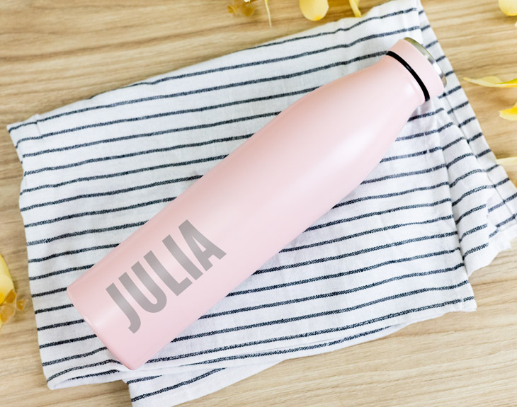 La hidratación es una de las cosas más importantes de nuestra vida. El agua es una de las piezas fundamentales que hacen que sigamos vivos cada día. Y es que más de la mitad de nuestro porcentaje de masa corporal es agua... ¡Y en el cerebro llega casi a un 80% del total! Esto hace que beber agua todos los días sea de vital importancia para la salud. Sabemos que muchas veces se nos puede olvidar tomarnos nuestros dos litros de agua al día, y es que ese ritmo puede cambiar mucho dependiendo del tipo de botella que tengas. ¡Nuestras botellas tienen que representar nuestra personalidad al máximo! ¿Conoces a alguien que es muy cuqui y que necesita beber más agua en su día a día? ¡Esta botella XL personalizado es perfecta para él o ella! Esta botella de acero inoxidable con colores pastel tiene una altura de 28 centímetros y una capacidad de 750 mililitros. Esto hace que sea perfecta a la hora de tomarte tus imprescindibles 2 litros de agua. Y para que sea un regalo original de lo más especial, podrás grabar el nombre del afortunado/a en el lomo. ¡Entra en el diseñador y dinos cuál es el nombre! La botella cuenta con doble pared y aislamiento de cobre al vacío. Esto quiere decir que tus bebidas podrán mantenerse frías o calientes durante más tiempo, conservando su temperatura original. Altura de la botella: 28 cm. Diámetro de la base: 6,5 cm. Capacidad: 750 ml. Color: rosa. Material: Acero inoxidable.