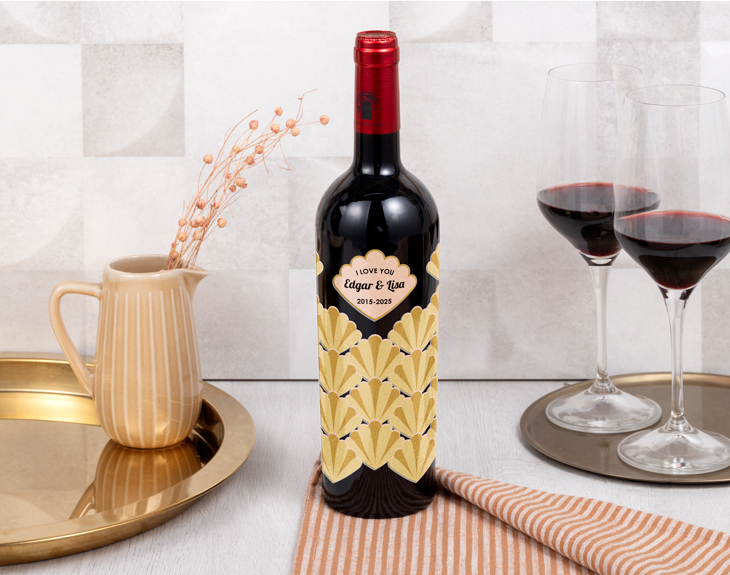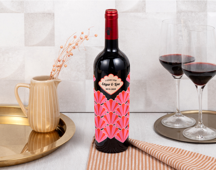 La mejor forma de celebrar el amor es con una cena especial… y, por supuesto, ¡un buen vino no puede faltar! Si se acerca vuestro aniversario, San Valentín o simplemente te apetece sorprender a tu pareja en una fecha importante, tenemos el detalle perfecto para hacerlo inolvidable: una botella de vino personalizada. Imagina una velada romántica, una mesa bonita, vuestra comida favorita y una botella decorada con vuestros nombres, una frase especial o la fecha que marcó vuestra historia. De la comida te encargas tú; de esta botella de vino única y personalizada, nos encargamos nosotros. Además de su bonito diseño, lo más importante está en el interior: un vino de la Tierra de Castilla y León con denominación de origen. Envejecido en barrica de roble, es un caldo de sabor intenso y lleno de matices, ideal para brindar en pareja. Todo presentado en una botella premium que lo convierte en un regalo tan especial como vuestro amor. ¿Cómo puedes personalizar tu vino? Muy fácil: añade el producto al carrito y accede al área de personalización. Podrás elegir entre dos estilos de diseño y escribir los textos que quieras. En solo unos minutos tendrás listo un regalo original para parejas. Sorprende a tu pareja con una botella que no solo se disfruta, ¡también se guarda como recuerdo!