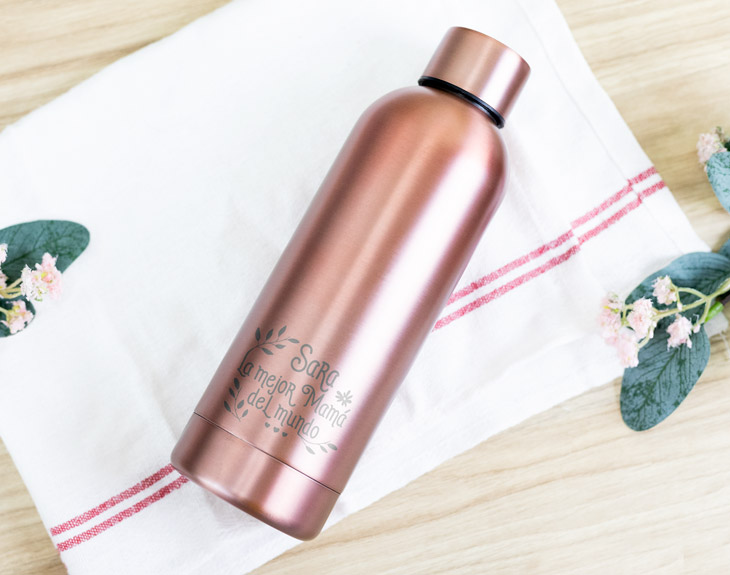 • Botella "VIP" personalizada. • Tarjeta recordatoria. Las madres son, probablemente, uno de nuestros familiares más importantes. Ellas nos dieron la vida, nos cuidaron desde pequeños y nos educaron para convertirnos en lo que hoy somos. No alcanzan los años para darles las gracias por todo lo que hacen por nosotros, pero una buena forma de hacerlo es demostrarles todo nuestro amor con regalos personalizados y únicos, como nuestra botella VIP Mejor mamá. Esta botella está fabricada en acero inoxidable y su acabado metálico lo convierten en un producto con un acabado premium. Cuenta con tapa de rosca para poder cerrarla y evitar escapes y es ideal para mantenernos hidratados gracias a su capacidad de más de medio litro. El lavado recomendamos realizarlo a mano, para que el baño del producto no se estropee en el lavavajillas. Sin embargo, lo mejor de este regalo no es solo el producto en si, si no la posibilidad de personalizarlo, de manera que tengamos un regalo único en el mundo. En este caso, podremos elegir el color que más nos guste para nuestra botella y agregar el nombre de nuestra madre para completar la frase más bonita: “la mejor mamá del mundo”. Todo el diseño se graba directamente en el material de la botella, consiguiendo así un resultado duradero y elegante. Este regalo cargado de sentimiento y de lo más práctico, encajará genial en cualquier ocasión y demostrará a nuestra madre lo mucho que la queremos. ¡Estamos seguros de que no querrá dejar de usarla!