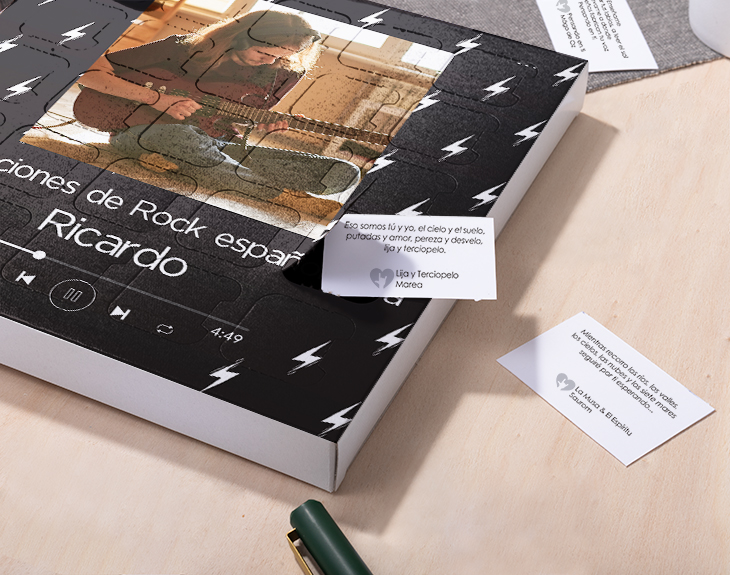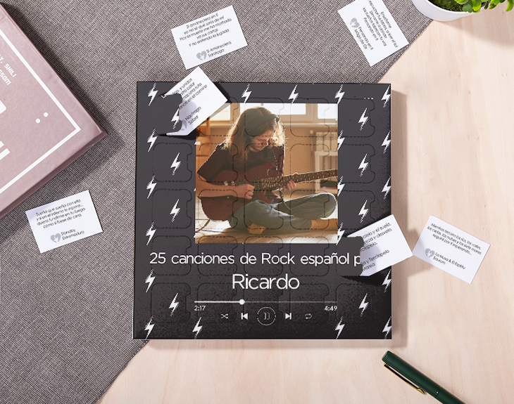 • Caja 25 canciones románticas de rock español. • Tarjeta recordatoria.