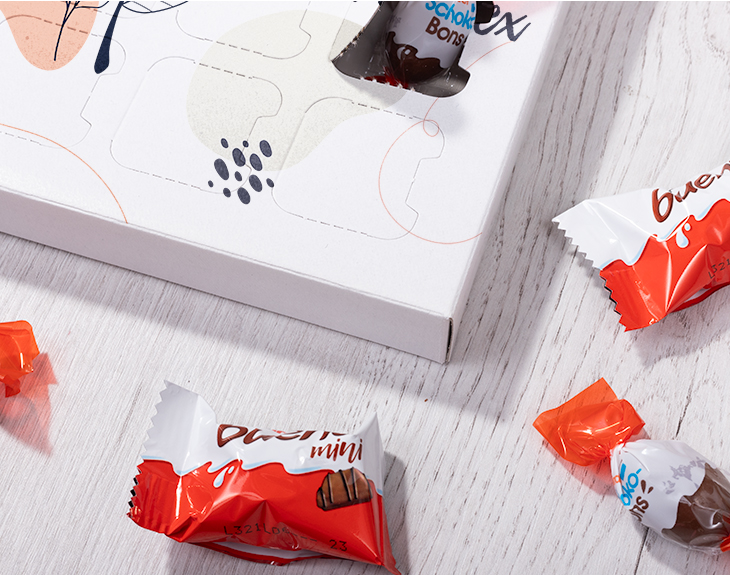 ¿Estás pensando en regalar una buena cantidad de chocolate? No solo es importante el contenido. ¡También importa el envoltorio donde lo entregas! Olvídate de los papeles seriados prescindibles y sorprende a esa persona especial con esta caja de 25 kinder personalizada. Le gustará tanto su diseño floral personalizado que, cuando se los acabe todos, seguro que quiere conservarla de recuerdo. Con tan solo añadir el producto al carrito, ya podrás pasar a nuestro facilísimo diseñador para escribir las dos frases que quieras junto a estas preciosas plantas. ¡Mira en la previsualización lo bonitas que quedan! Y debajo de estos colores pastel, descubrirás un gran surtido de las mejores chocolatinas Kinder bueno, schoko-bons... Nada como uno de estos bocaditos dulces para alegrarte el día. Puedes crear la dinámica que quieras con este regalo original para los más golosos. Crea una cuenta atrás para un día especial y que cada día amenice la espera con una mini chocolatina. ¡25 días para disfrutar del mejor chocolate Kinder poquito a poquito! Medidas aproximadas de la caja: 23 cm x 23 cm. Importante: Las chocolatinas se incluirán según stock, pero siempre estarán todas súper deliciosas.