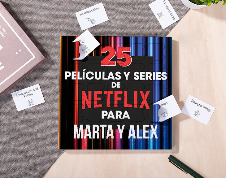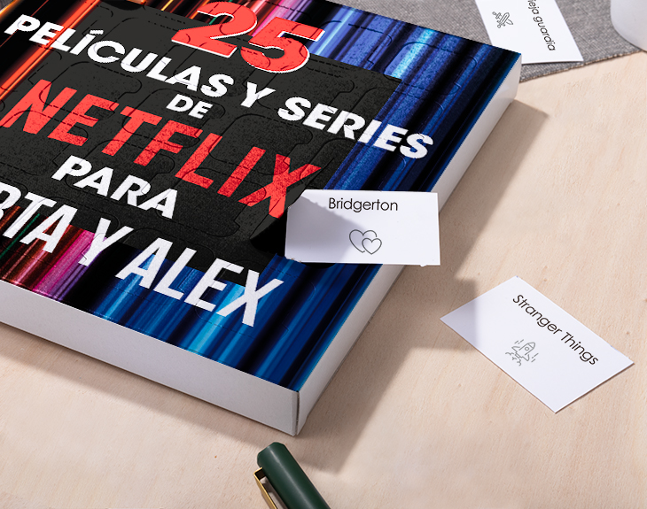 • Caja 25 pelis y series de Netflix. • Tarjeta recordatoria.