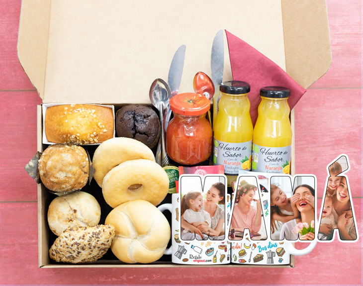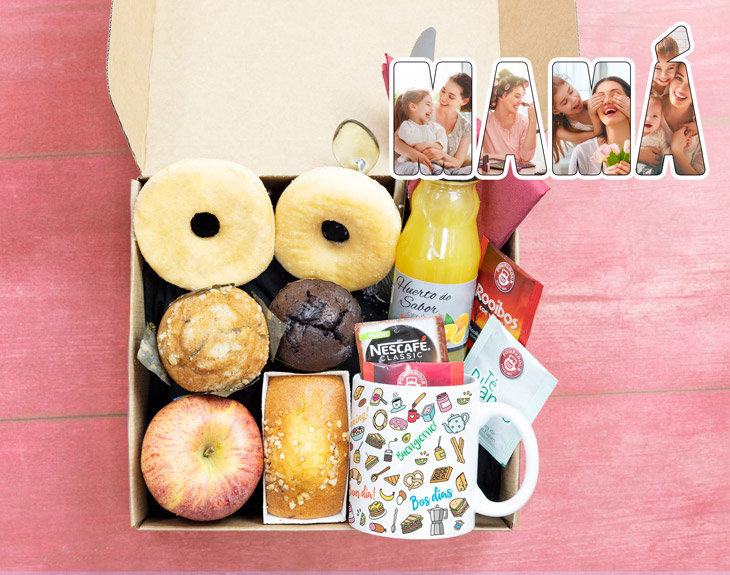 ¿Cuántos instantes inolvidables has compartido con la mujer más importante de tu vida? Desde el mismo nacimiento, la relación entre una madre y un hijo es casi inquebrantable, un vínculo que no se puede comparar con ninguno otro. ¿Recuerdas esa fiesta de cumpleaños que te preparó? ¿O tal vez esos sábados en los que te llevaba a tu restaurante favorito? Todos esos increíbles momentos viven en vuestra memoria para siempre, ¿pero no estaría genial regalarle a mamá un poco de nostalgia y mucha, mucha comida? Si quieres hacerle un regalo especial a tu madre, esta caja de desayuno con foto es el producto perfecto para ella. Porque seamos claros: ¿acaso hay mejor manera de comenzar el Día de la Madre que con un buen desayuno? Esta caja cuenta con un desayuno fantástico, para que mamá tenga toda la energía posible a lo largo de la jornada. Además, cuenta con una gran variedad de productos. Tés, cafés, zumos, muchísima bollería artesanal... ¡y podrás elegir que sea para dos personas! Disfrutad de una comilona tremenda y celebra que tienes la mejor madre del mundo gracias a esteregalo original ¿Cómo se graba el mensaje? ¡Es muy fácil! Añade el desayuno al carrito y dale al botón de "personalizar". Podrás grabar un mensaje en ese momento (con el micro del móvil o del ordenador) y nosotros nos encargaremos de incluirlo en el desayuno. El mensaje tiene un límite de 30 segundos. ¡Ahí podrás decirle lo que quieras!