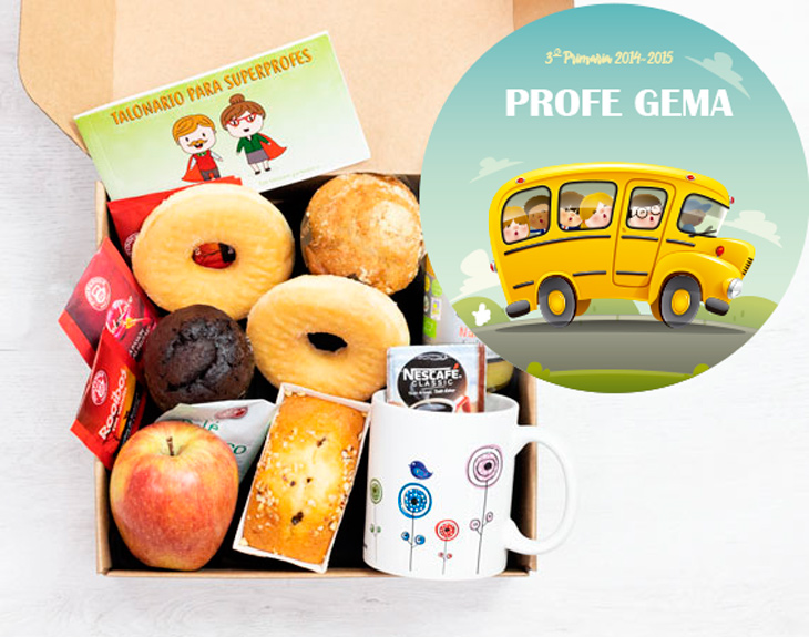 Contenido para 1 persona: • Caja (personalizada o sin personalizar). • Taza blanca (personalízala por 5€). • Manzana roja. • Café. • Té de varios sabores. • Zumo ecológico. • Bollería Artesanal: -Coulant de chocolate (artesanal). -Muffins con pepitas. (artesanal). -Donuts. -Mini Donuts. • Servilleta. • Talonario súper profes. • Tarjeta Recordatoria. Contenido para 2 personas: • Caja (personalizada o sin personalizar). • 2 Tazas blancas (personaliza cada una por 5€). • 2 Cafés. • Té de varios sabores. • 2 Zumos ecológico (Huerto de Sabor). • Bollería Artesanal: -Coulant de chocolate (artesanal). -Muffins con pepitas. (artesanal). -Donuts. -Mini Donuts. • Panes artesanales: - Pan chapata - Pan de cristal. - Pan brioche. • Tomate rosa de Barbastro triturado (300g). • 2 Aceites de oliva ecológicos 10 ml. • 2 cuberterías. • 2 servilletas. • Talonario súper profes. • Tarjeta Recordatoria. Las tazas y los termos personalizados reemplazarán a los del desayuno. ¿Cómo incluir los productos opcionales? Una vez hayas seleccionado el tipo de desayuno, en el apartado de adicionales (paso 2) podrás añadir todos los productos opcionales que quieras.