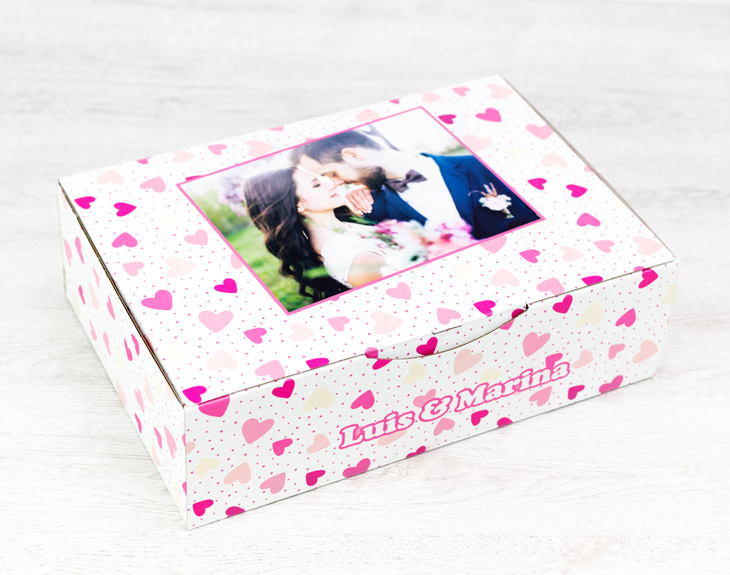 Un regalo especial se debe guardar en un lugar muy especial. Por eso, esta caja de regalo personalizada es perfecta para esconder las mejores sorpresas del mundo. Con una foto y un texto en su lateral, lo tendrá todo para esconder los regalos originales más especiales. Ya sea para tu pareja o para tu mejor amigo, este tipo de cajas son perfectas para guardar el secreto mejor guardado. Por eso, elige la mejor foto, y personalizaremos la caja como tú quieras. ¡Es un complemento de lo más romántico! Medidas: 32 cm x 10 cm x 21,5 cm.