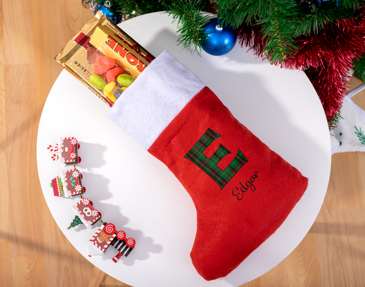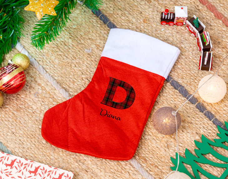 ¡Qué importante es saber envolver bien los regalos! Sobre todo en Navidad, hay que buscar telas y diseños festivos y que peguen con la época. Este año, ofrecemos las texturas y patrones más bonitas y navideñas sobe este calcetín de navidad personalizado. Si pasas la mano por encima, comprobarás su suave tacto de fieltro rojo y blanco. Justo ahí, tendrás las iniciales de los nombres de tu familia o grupo de amigos con un bonito patrón de líneas horizontales y verticales formando cuadros. Este diseño Tartán típico de escocia es ideal para dar el toque mágico a tu calcetín navideño. ¡Tienes todo un alfabeto de la A a la Z con varias opciones de colores! Y también, puedes añadir hasta un breve texto por debajo: vuestros nombres, vuestros apodos, mamá y papá... Crea a tu gusto esta bota roja con nombre y diseño navideño. Tan solo tienes que añadir el producto al carrito y seleccionar las iniciales con sus textos. Después, nuestro equipo de personalización ya se encargará de ajustarlo para que os encante y lo conservéis durante años. ¡Y hay más sorpresas! Convierte esta bota de Papá Noel personalizada en el mejor regalo original para Navidad al rellenarla con un surtido variado de chuches o con tres tabletas del mejor chocolate del mundo. ¡Imagina despertarte el 25 de diciembre y tener colgadas del árbol o de tu armario una increíble variedad de chocolate Suchard junto a tu nombre! Material: fieltro rojo y blanco. Altura: 36 cm. Importante: si puedes tener reacción a cualquier tipo de alérgenos, puedes escribirnos para consultar si hay alguna opción alternativa. El calcetín relleno de dulces incluye un turrón Suchard, un Toblerone y una bolsita de chuches, ¡es genial para endulzar estas fiestas!