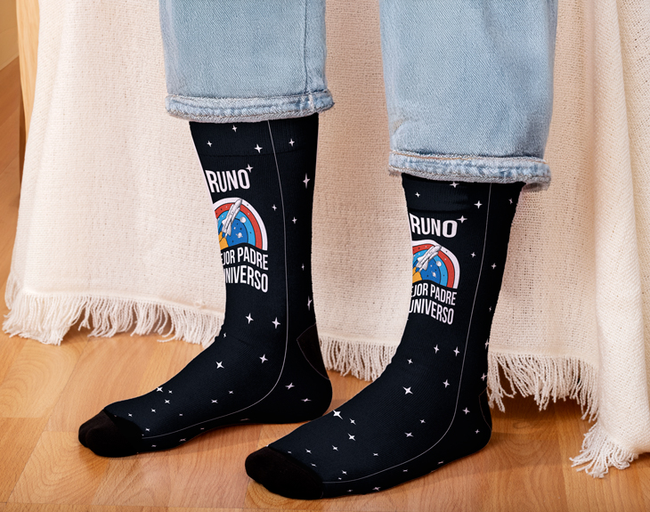 ¿Aún no tienes el regalo del Día del Padre? Te lo ponemos fácil: con nuestros calcetines personalizados tendrás el mejor regalo para el mejor papá, no solo del mundo, ¡sino del universo entero! A partir del 19 de marzo, papá tendrá unos nuevos calcetines favoritos, ¡y será como tener una parte de la galaxia en sus pies! Lo que hace especial a estos calcetines es que son personalizables. Podrás añadir el nombre de tu papá, convirtiéndolos en un accesorio muy personal. ¡Imagina su cara cuando descubra sus nuevos calcetines con un diseño estelar, con estrellas que lo harán sentir como si estuviera caminando por el universo! Personalizar estos calcetines es muy sencillo. Solo añade el producto al carrito y entra al área de personalización. Allí podrás escribir el nombre de tu papá. ¡Y listo! Nosotros nos encargaremos de que este regalo original para papá llegue justo a tiempo para su día. Importante: En los calcetines bajos, la impresión se realiza en la planta del pie o el empeine. IMPORTANTE: Talla: única Medidas de cada calcetín: 41 x 9 cm. Medidas de la caja: 13,5 x 10,5 x 4 cm. Medidas de la lata: 11 x 8,5 cm. Material: poliéster.
