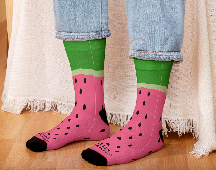 ¡Qué rica está la fruta! Todos tenemos alguna pieza de fruta que disfrutamos todos los días, una que comeríamos en cualquier momento. Hay personas a la que les encanta la manzana, la naranja, o incluso la piña. ¿Imaginas cómo sería tu vida sin alguna de estos fantásticos alimentos? Frutas como el plátano o la pera nos proporcionan la energía que necesitamos, pero hay una que las supera a todas: la sandía. Porque tenemos que dejar una cosa clara: no hay nada como comer un trozo de sandía después de comer en pleno verano. Fresquita, con muchísimo sabor, y que te deja satisfecho. ¿Conoces a alguien que está tan rico como uno de estos melones de agua? Ten un detalle con esa persona especial y dile lo riquísimo que está gracias a estos calcetines personalizados. ¿Acaso hay algo mejor que unos calcetines molones y coloridos? Haz que todo el mundo se gire cuando vayas por la calle gracias a este regalo original. Podrás comprar solo los calcetines, o incluir una caja básica o lata para calcetines personalizada. Eso sí, este par de calcetines elásticos con diseño personalizable es de talla única, y podrás personalizarlo añadiendo el nombre de esa persona especial. IMPORTANTE: Talla: única Medidas de cada calcetín: 41x9 cm. Medidas de la caja: 13,5x10,5x4 cm. Medidas de la lata: 11x8,5 cm. Material: poliéster.
