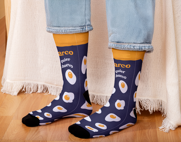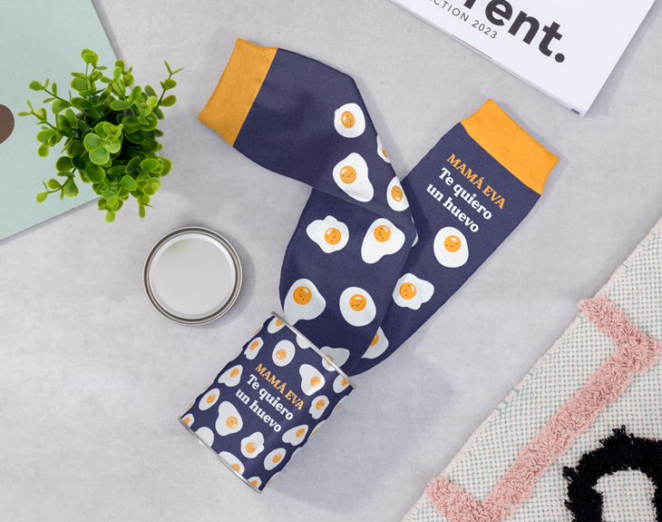 ¿Se acerca una fecha especial e y aún no tienes el regalo perfecto? ¡No te preocupes, tenemos la solución! Sorprende con estos originales calcetines personalizados. Con un divertido diseño de huevos fritos, será la manera más tierna y graciosa de decirle cuánto lo quieres. ¡Morirá de risa y ternura al mismo tiempo! Lo que hace a estos calcetines realmente especiales es que son personalizables. Podrás incluir el nombre de esa persona tan especial, ¡y así no habrá dudas de quién los lleva! Nadie tendrá unos calcetines tan originales como estos. Dile lo mucho que lo quieres con este detalle único, lleno de humor y cariño. Puedes optar por comprar solo los calcetines, o añadir una lata personalizada para hacer el regalo aún más especial. Estos calcetines elásticos son de talla única y puedes personalizarlos con el nombre o texto que desees. Además, podrás elegir entre diferentes estilos de huevos fritos: ¿prefieres que tengan caritas sonrientes o los clásicos huevos fritos? ¡Tú decides! Sin duda, estos calcetines personalizados el diseño más original serán el mejor regalo del mundo. ¡Un detalle que jamás olvidará! IMPORTANTE: Talla: única Medidas de cada calcetín: 41x9 cm. Medidas de la caja: 13,5x10,5x4 cm. Medidas de la lata: 11x8,5 cm. Material: poliéster.