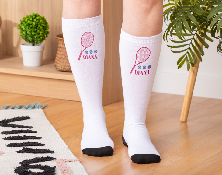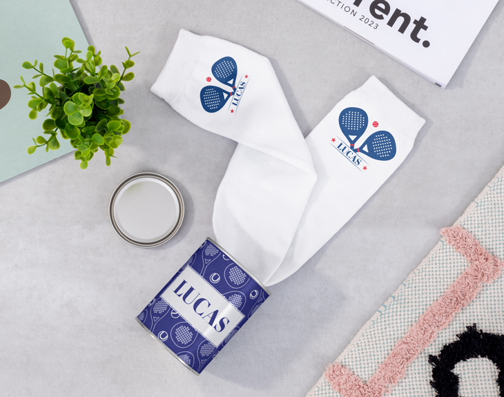 Estos calcetines personalizados son perfectos para darle el ánimo que necesita cualquier deportista. Son el detalle ideal para aportar una dosis de buena energía. Sea el deporte de raquetas que practiques, tenemos varias opciones en nuestro diseño para que se adapten a ti. Son ideales para regalar en ocasiones como cumpleaños, amigo invisible o cualquier otro evento especial. Sin duda, este par de calcetines elásticos con diseño personalizable de "Raquetas Elegantes" será un total acierto. Puedes elegir entre los diseños de pádel o tenis, y el color que más te guste. Si quieres hacerlo aún más personal, puedes optar por llevarlos con una caja básica o lata personalizada para calcetines. Solo añade el producto al carrito y haz clic en "personalizar". Allí podrás agregar el nombre de quien los recibirá y elegir el color de la lata. ¡Y listo! Tendrás el regalo original para deportistas. IMPORTANTE: Talla: única Medidas de cada calcetín: 41x9 cm. Medidas de la caja: 13,5x10,5x4 cm. Medidas de la lata: 11x8,5 cm. Material: poliéster.